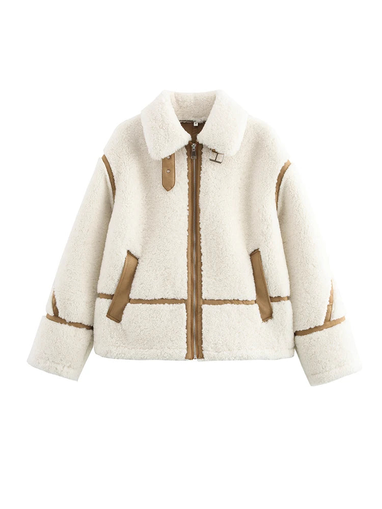 Embrace sophisticated style with this lamb wool one coat that captures the essence of European and American fashion. Featuring a classic lapel design and loose, comfortable fit, this jacket top combines timeless elegance with cozy warmth for the modern woman.