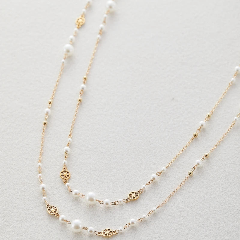 2Pcs/Set Temperament Imitation Pearl Long Chain Necklace for Women Fashion Statement Goth Sweather Link Neck Jewelry