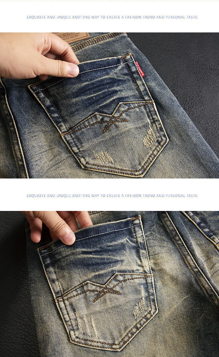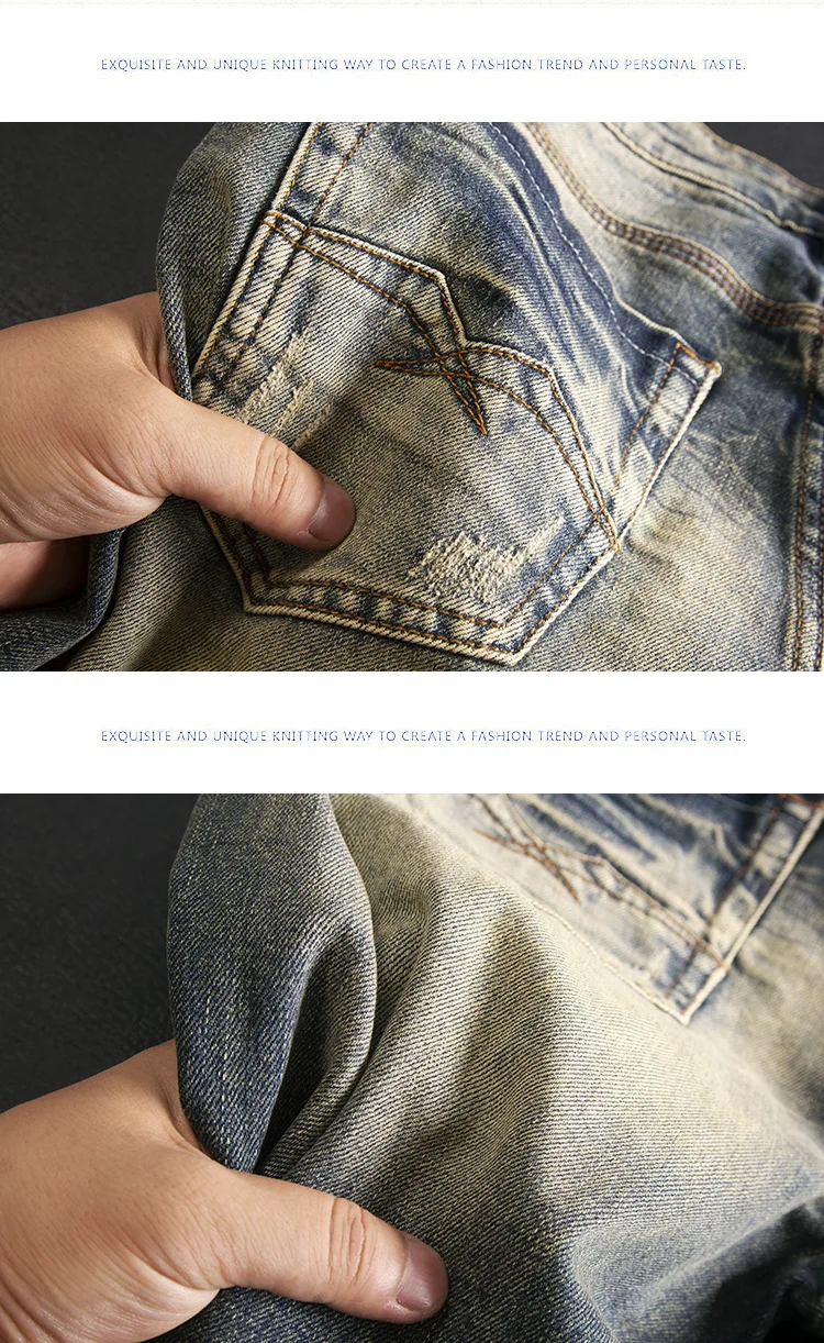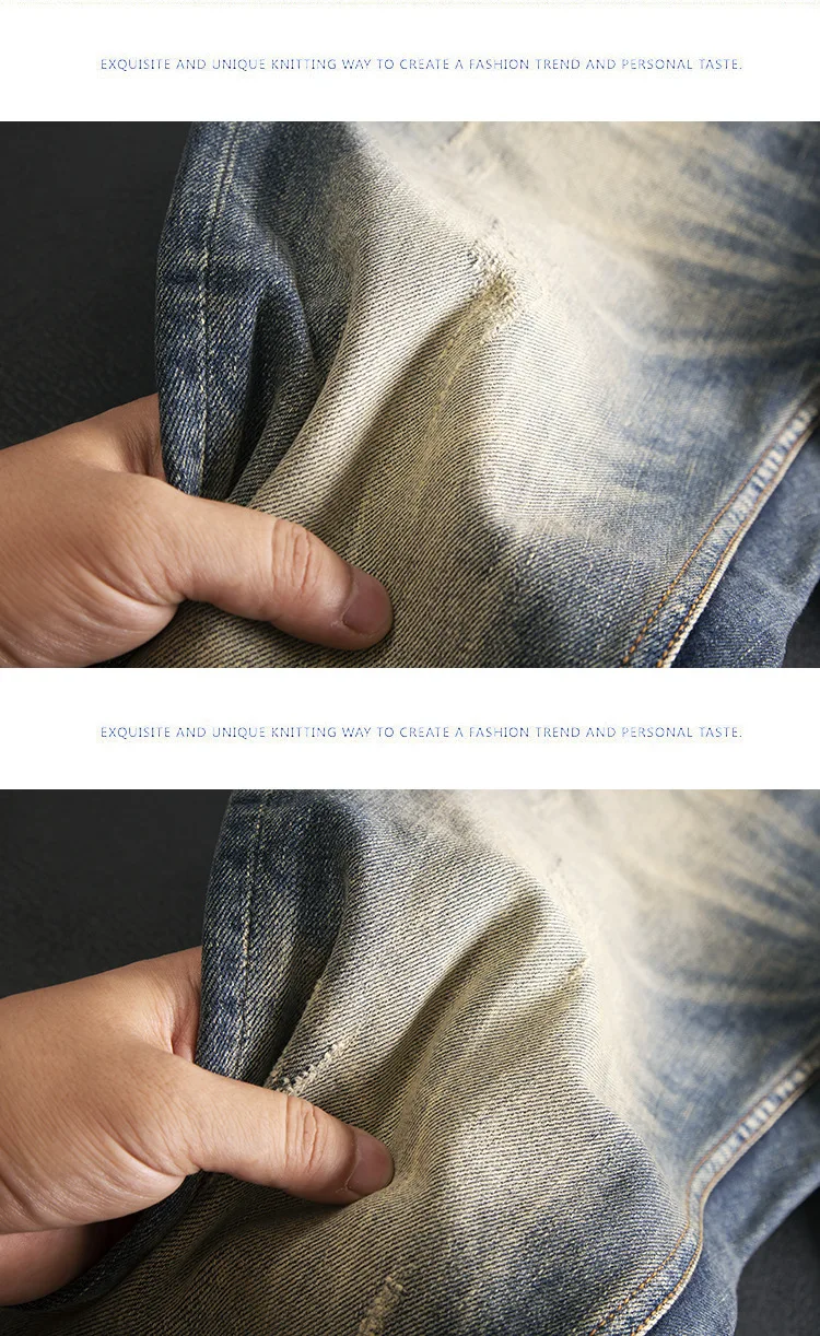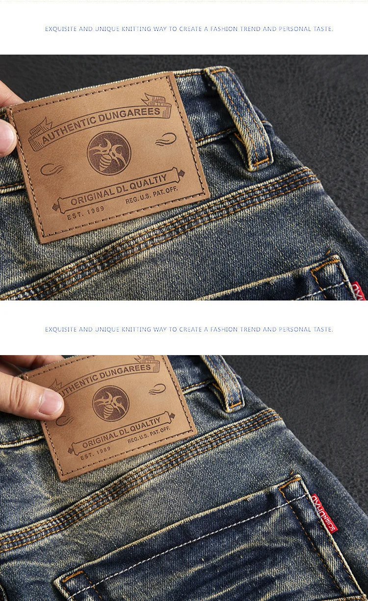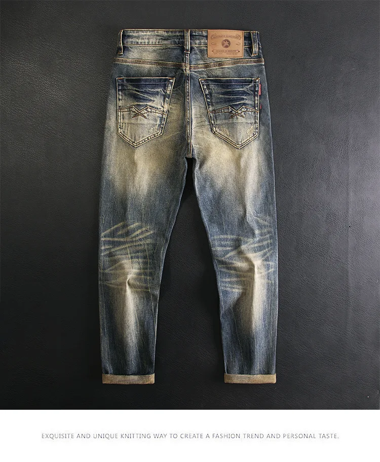 High end jeans for men, American retro nostalgic washed slim fit, small straight tube elastic autumn and winter trendy pants