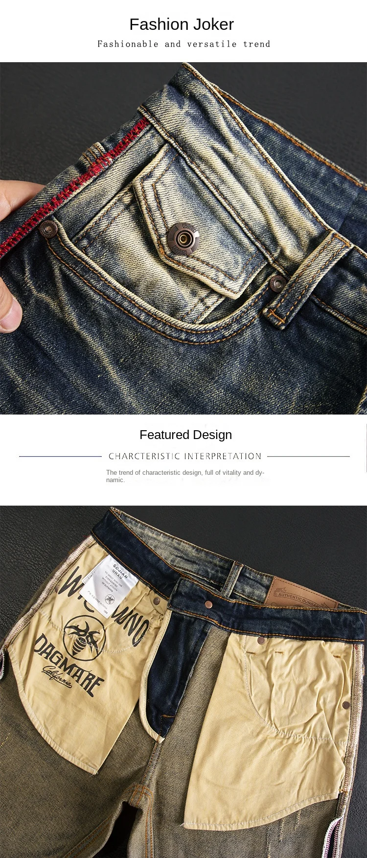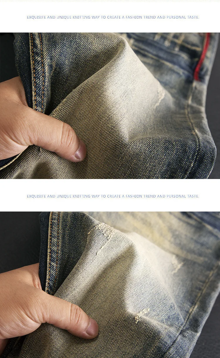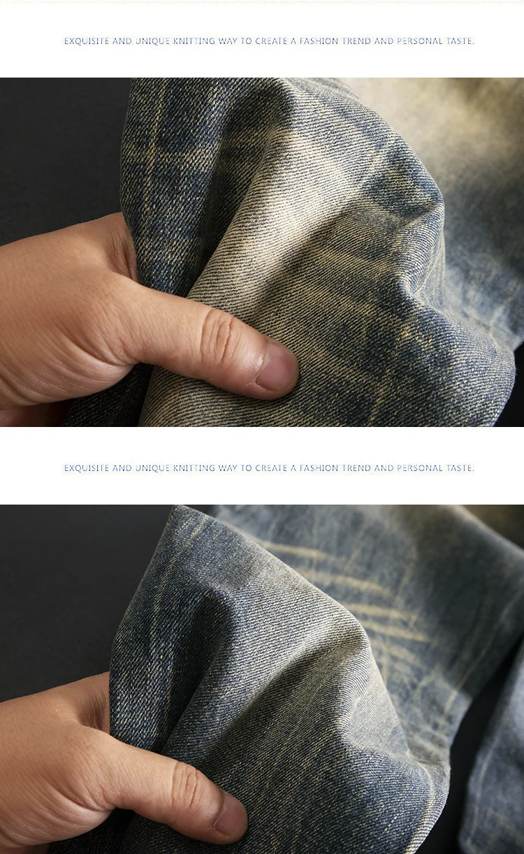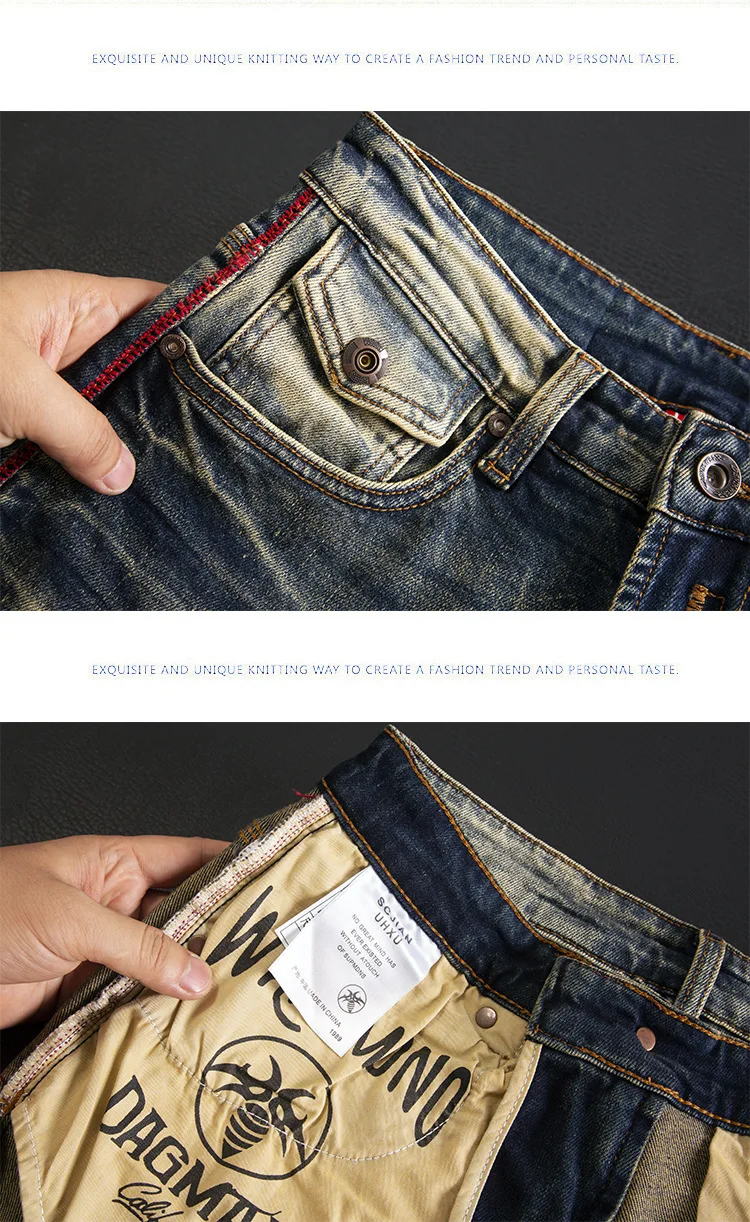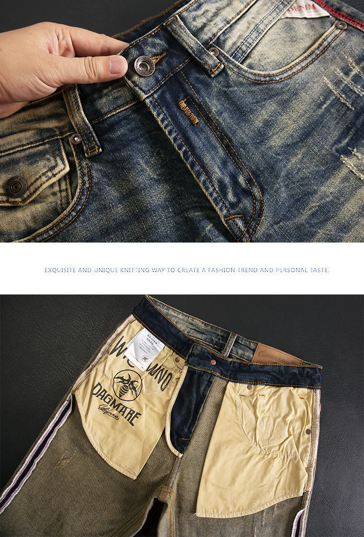 High end jeans for men, American retro nostalgic washed slim fit, small straight tube elastic autumn and winter trendy pants
