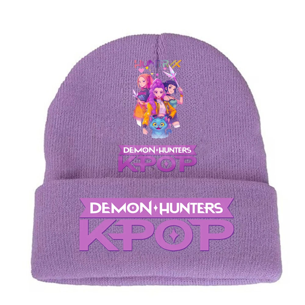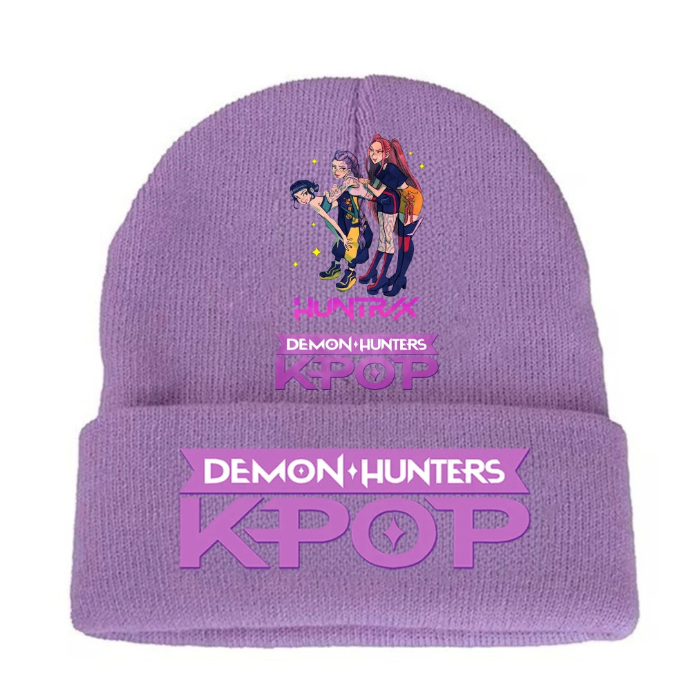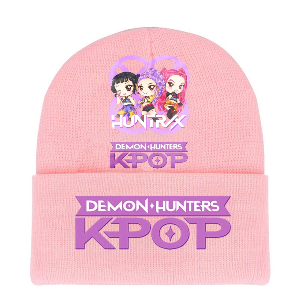 K-pop Demon Hunters Children Knit Hat Kawaii Cartoon Printed Beanie Autumn Girls Winter Outdoor Sports Warm Hat Birthday Gifts