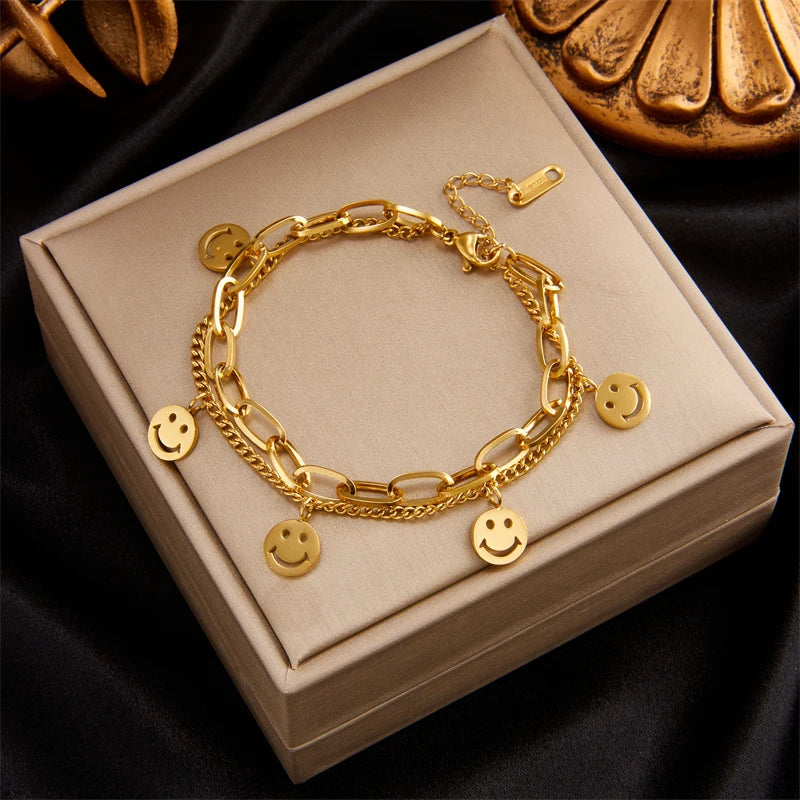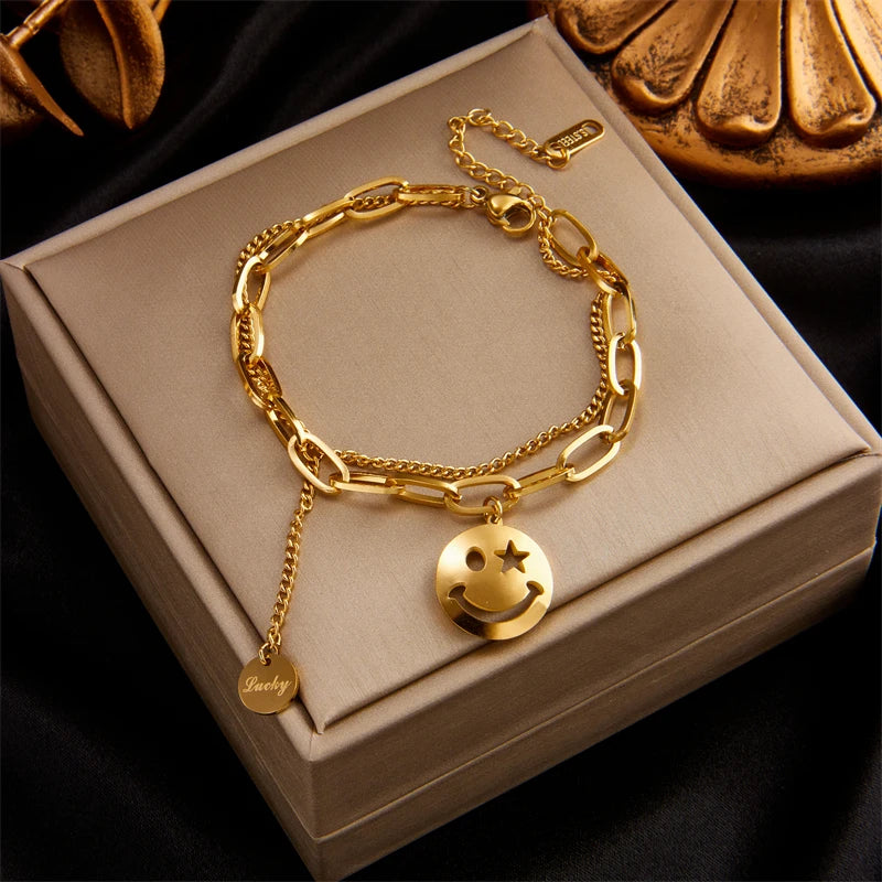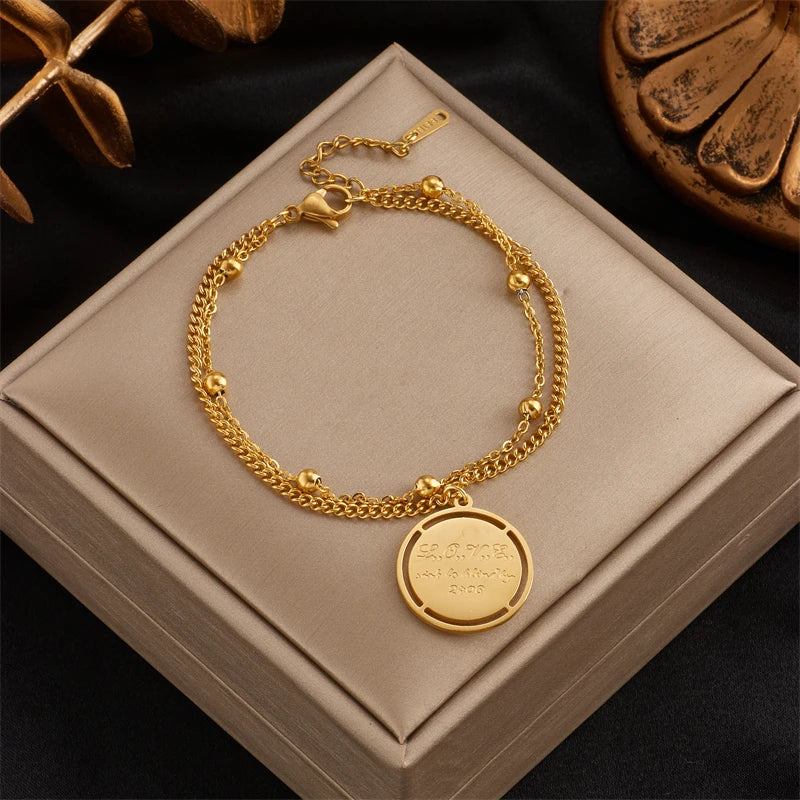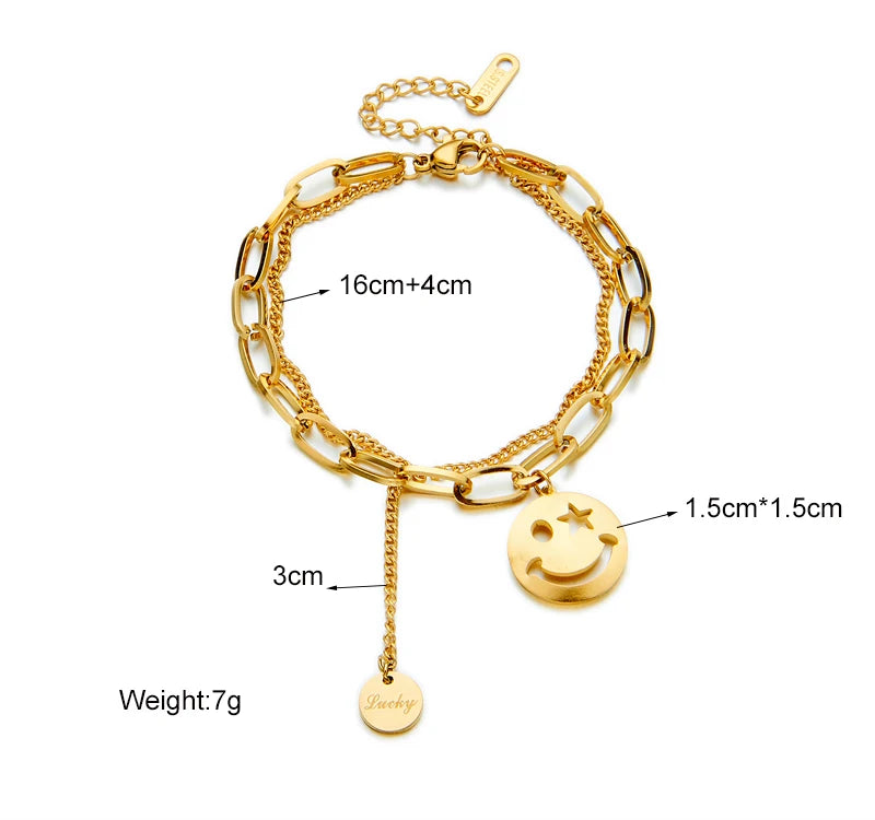 MEYRROYU 316 Stainless Steel Vintage Green Stone Heart Tassel Multilayer Charm Bracelet for Women Wedding Jewelry Beach брелок